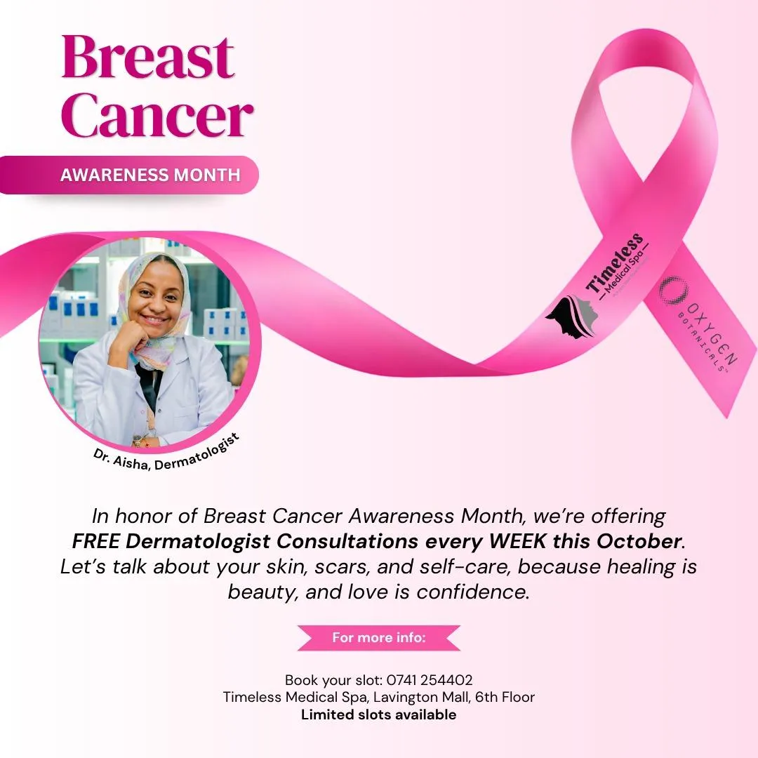 Timeless Medical Spa invites you to a free consultation in support of Breast Cancer Awareness Month. Take the first step toward confidence and care.